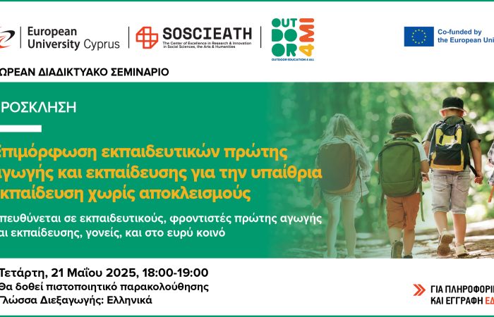 Για περισσότερες πληροφορίες και δηλώσεις συμμετοχής στο πρόγραμμα επικοινωνήστε μέσω ηλεκτρονικού ταχυδρομείου: Δρ. Μαρία Παπαζαχαρίου – Χριστοφόρου, m.papazachariou@euc.ac.cy